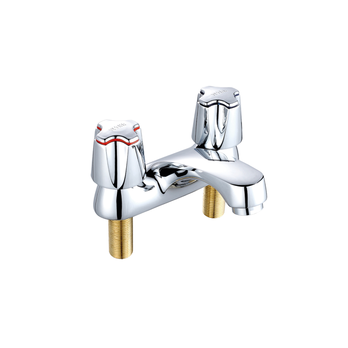 Mezcladora para lavamanos con manijas Star metal, diseño clásico y cuerpo metálico reforzado. Ideal para baños residenciales y comerciales.