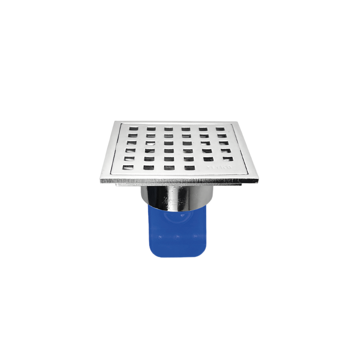 Rejilla cuadrada cromada de 50 mm con sistema anti-olor. Ideal para duchas, baños y zonas húmedas. Presentación en blíster.